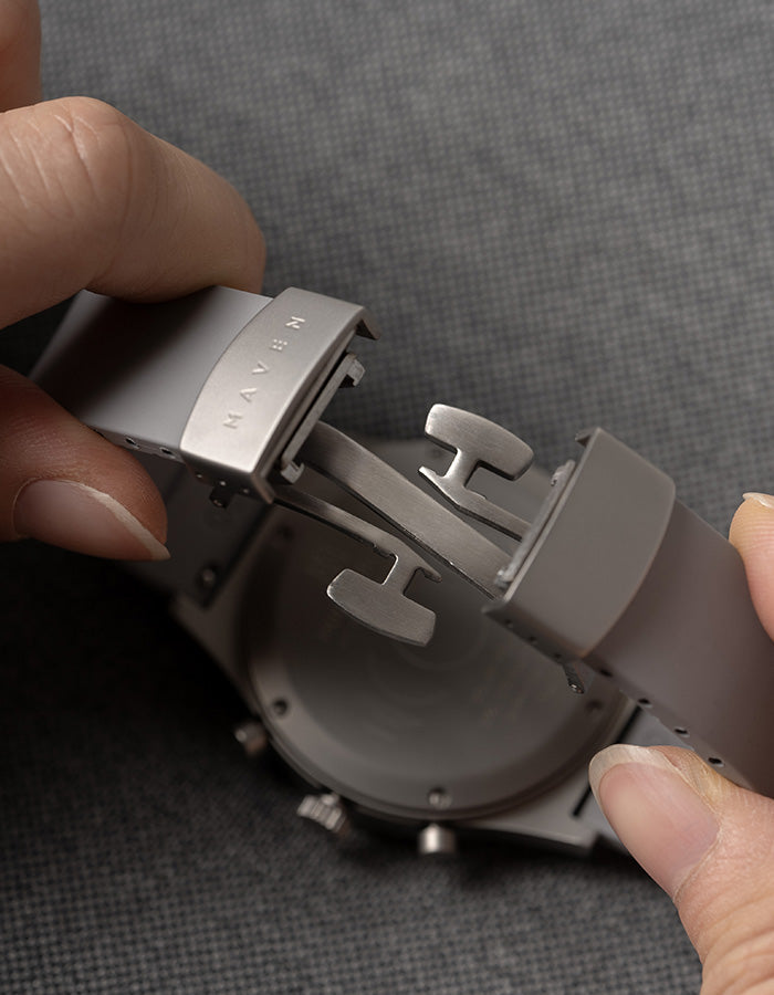 프리미엄 FKM(플루오로엘라스토머)으로 제작된 MAVEN CTS 스트랩은 편안함, 내구성, 맞춤형 착용감을 제공합니다. 열, 자외선, 오일, 땀에 강해 일상 착용과 야외 활동에 적합합니다. 길이 조절 가능한 디자인으로 손목에 완벽하게 맞추며, 퀵 릴리스 스프링바로 손쉽게 교체할 수 있습니다. 미세한 샌드블라스트 텍스처와 스테인리스 스틸 버터플라이 클라스프가 결합되어 세련된 스타일과 오래 지속되는 성능을 제공합니다.